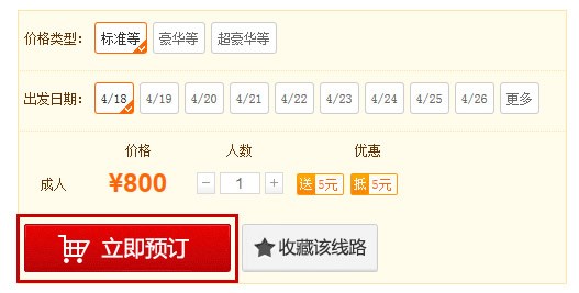 产品后,选择好价格类型和出发日期直接点击“立刻预定”进入预定流程