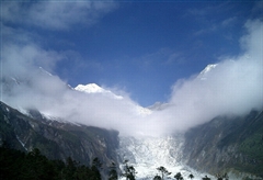 2.步行游览冰川:从三号营地步行穿越原始森林,单程步行需1个半小时左右,到观景台后,还可下行到冰川底部,近距离观赏冰川。