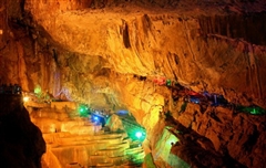 在岩洞游览的过程当中,各景点的灯光是走到前段,后段自动关闭,不要远离团队。